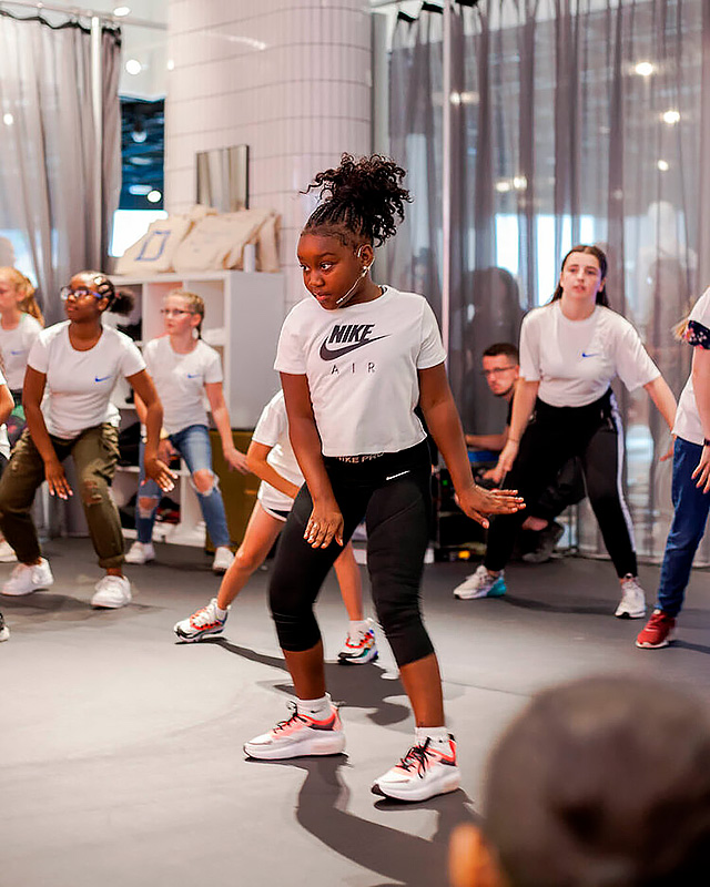Детский танцевальный лагерь Nike располагается на базе колледжа Лансинг недалеко от города Брайтон. Танцевальная программа организована инструкторами из ведущей танцевальной студии Лондона и Нью-Йорка At Your Beat, где тренером и основателем является Джоэль Де Фонтен. Являясь тренером Nike, хореографом, танцором и постановщиком, Джоэль ставил хореографию и работал для брендов, музыкальных исполнителей и звукозаписывающих компаний, таких как Nike, MTV, Virgin Records, ASOS и Sony. Музыкальная студия выступает за энергию, самовыражение и расширение прав и возможностей.