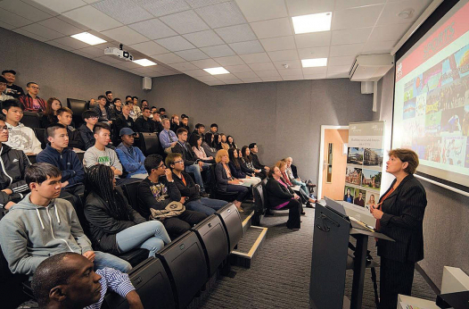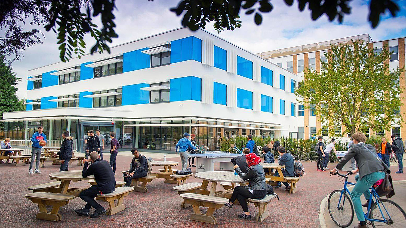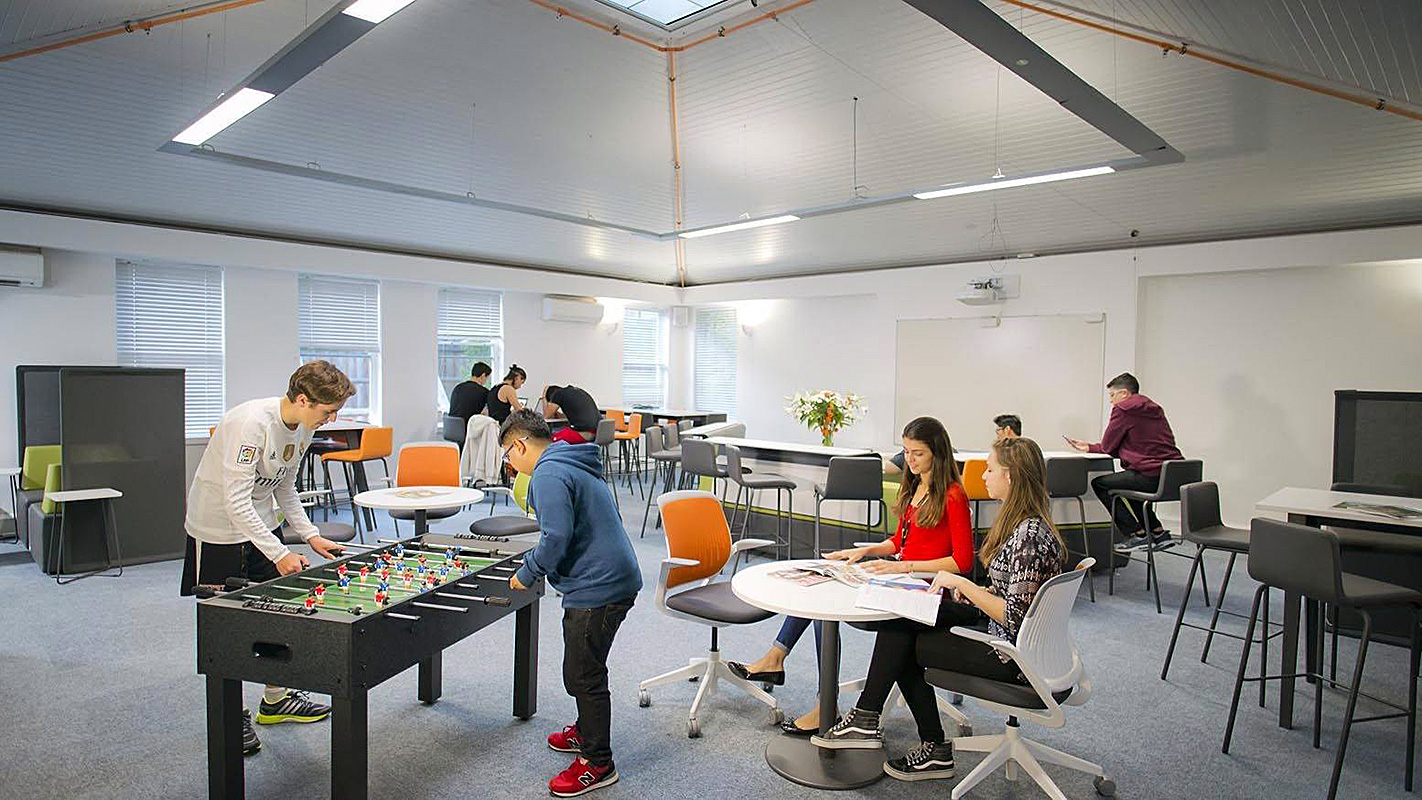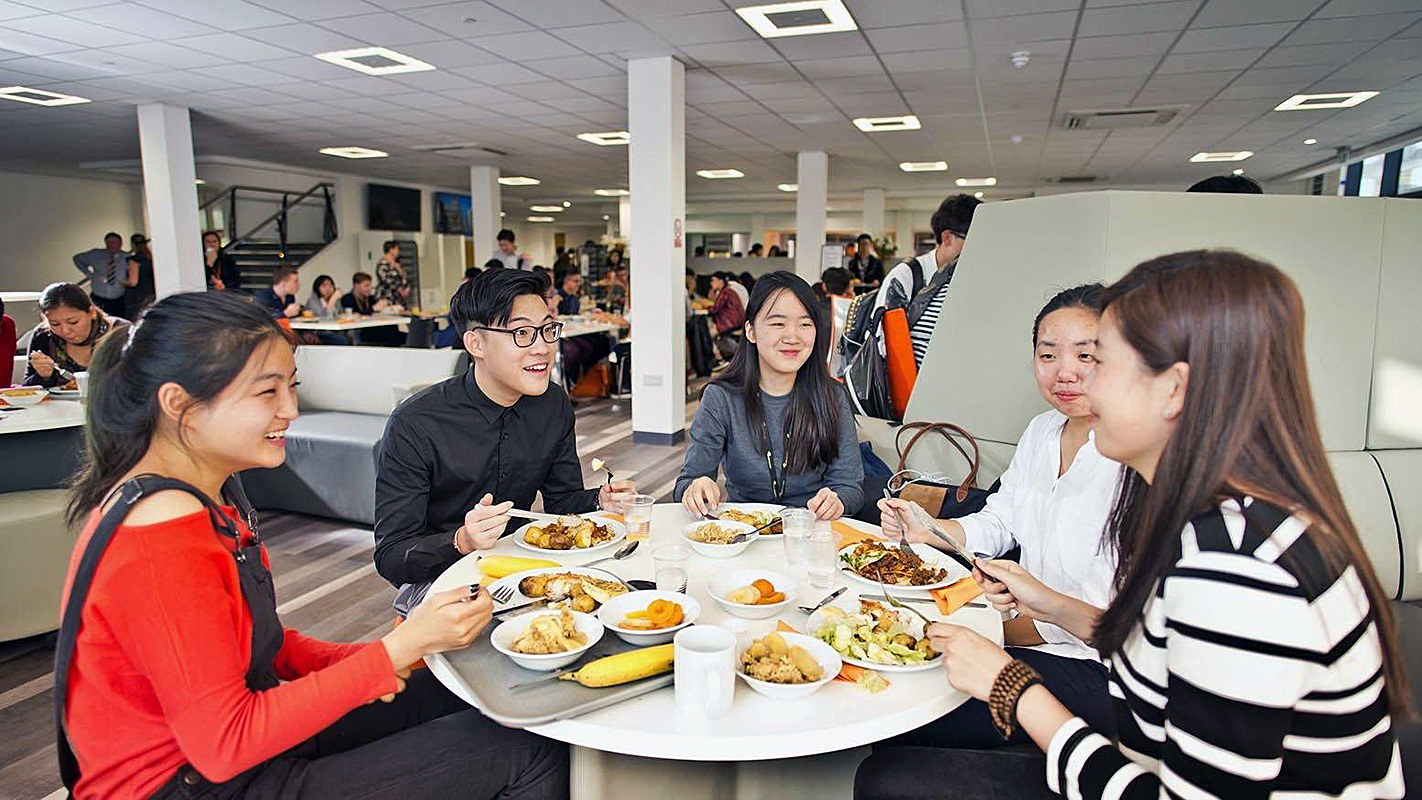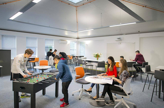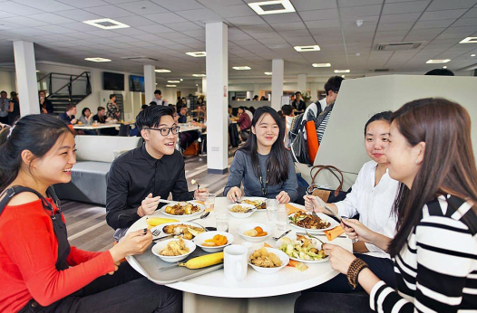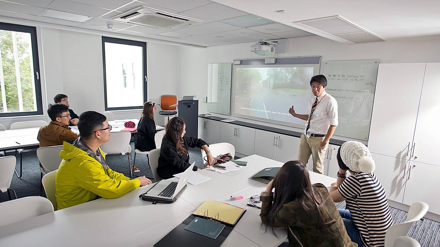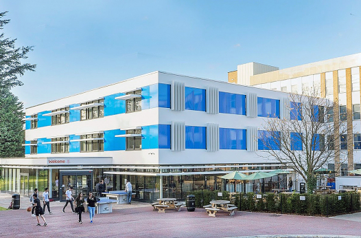 Учащиеся проживают в том же кампусе, где и учатся, то есть ученикам не нужно даже выходить на улицу в случае дождя, чтоб добраться до аудитории. Кампус выполнен в современном стиле, оборудован по последним техническим тенденциям и удачно расположен в центре города, недалеко от берега реки Кам. Ученики заселяются в одноместные комнаты с отдельной ванной комнатой. На территории кампуса есть медицинский кабинет и проводится круглосуточный контроль, также доступен бесплатный Wi-Fi.