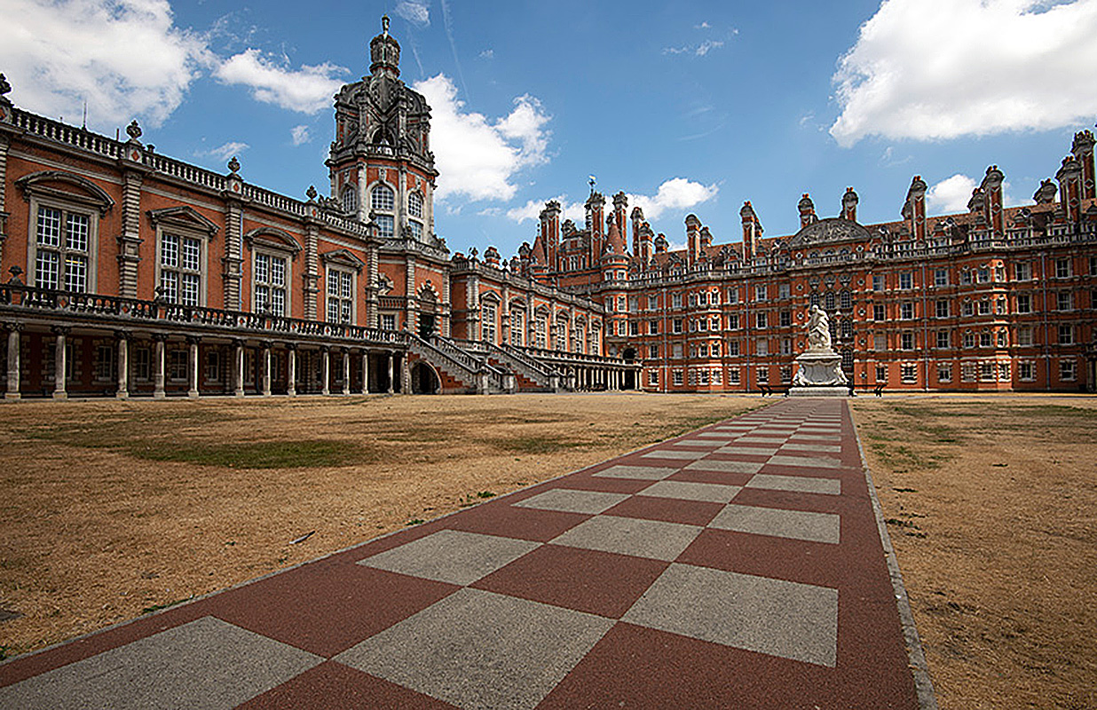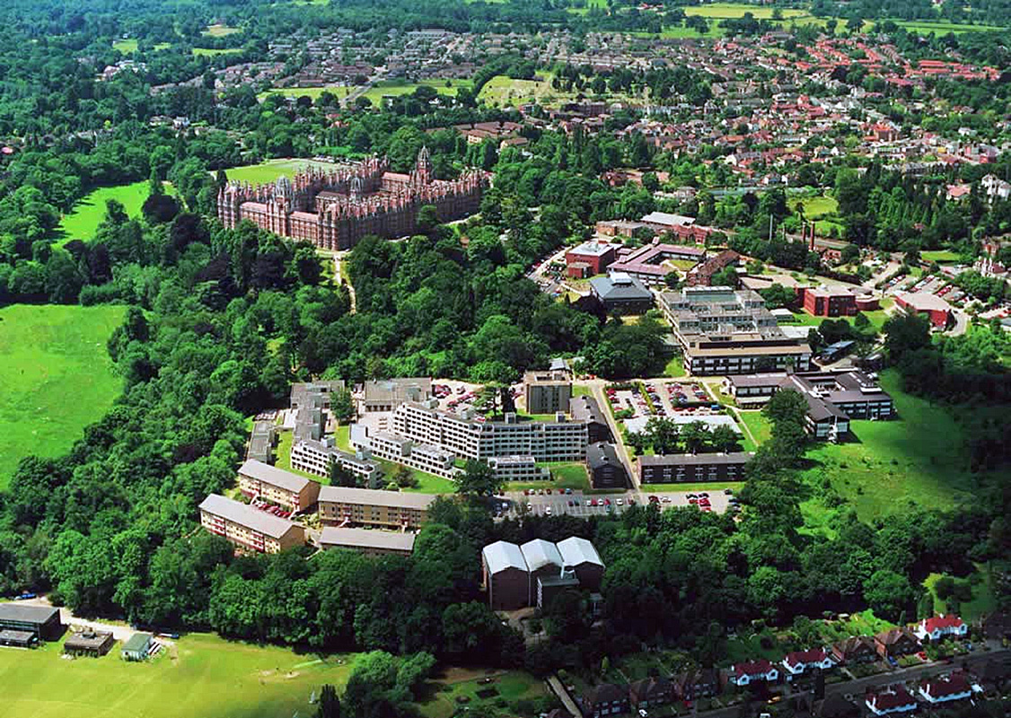 Кампус школы Royal Holloway - государственный исследовательский университет и колледж Лондонского университета. Кампус в Эгхеме был основан в 1879 году викторианским предпринимателем и филантропом Томасом Холлоуэем. Он был официально открыт королевой Викторией как женский колледж в 1886 году.