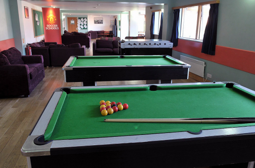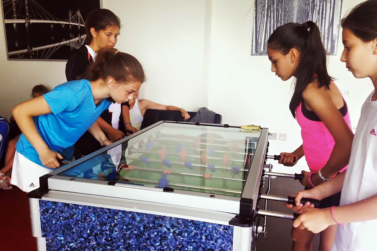 - времяпрепровождение в лаундже с телевизором, настольным футболом и игровыми приставками