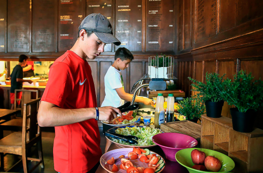 Дети размещаются в 1- или 2-х местных номерах с общей ванной. Питание 3-х разовое с вечерним перекусом и возможностью вегетарианского меню. На территории резиденции есть бесплатный wi-fi и прачечная.