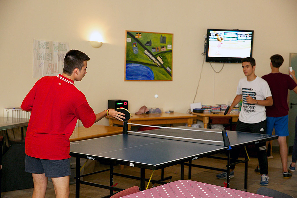 Кампус школы представляет собой компактное здание в средневековом стиле, где все необходимое находится под одной крышей: классные комнаты, обеденный зал, зоны отдыха, и комнаты для проживания. В школе царит уютная семейная атмосфера, где сотрудники лагеря знают каждого студента по имени и готовы прийти на помощь при необходимости.