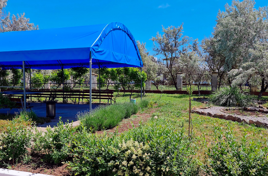 Также на территории находится собственный песчаный пляж, спортивные площадки для игр, парк для прогулок, открытая сцена для всех выступлений и мероприятий, медпункт с круглосуточным медицинским обслуживанием, охрана территории.