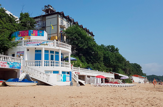 Лагерь расположен минутах в 20 ходьбы от моря. Пляж оборудован лежаками, но их достаточно мало. Есть спасатель, который наблюдает за купающимися детьми . Море в этом месте очень мелкое, но все равно нырять запрещено, и это строго соблюдается вожатыми. Правда выходами на море детей не баловали: ребёнок не накупался, не назагорался, так как не повезло с погодой, а в остальное время пребыванию на море большого значения не придавали.