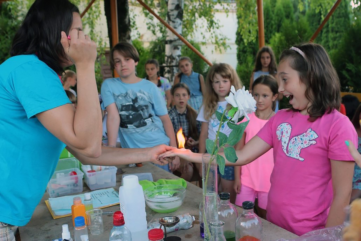 Детский клуб Дорога Добра с 2014 года проводит летние тематические смены в Подмосковье для детей и подростков от 7 до 17 лет. Лагерь предлагает 5 тематик смен: английский язык, программирование, большой теннис, театр, верховая езда.