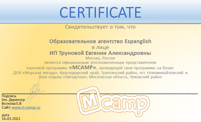Лагерь MCamp более 5 лет организовывает языковые и тематические смены для детей в Подмосковье в Чеховском районе. Обучение английскому происходит в неформальной и игровой обстановке, так что материал будет усваиваться намного легче: без заучиваний и ночей над учебниками - так ребята быстрее и легче преодолевают языковой барьер и начинают говорить.