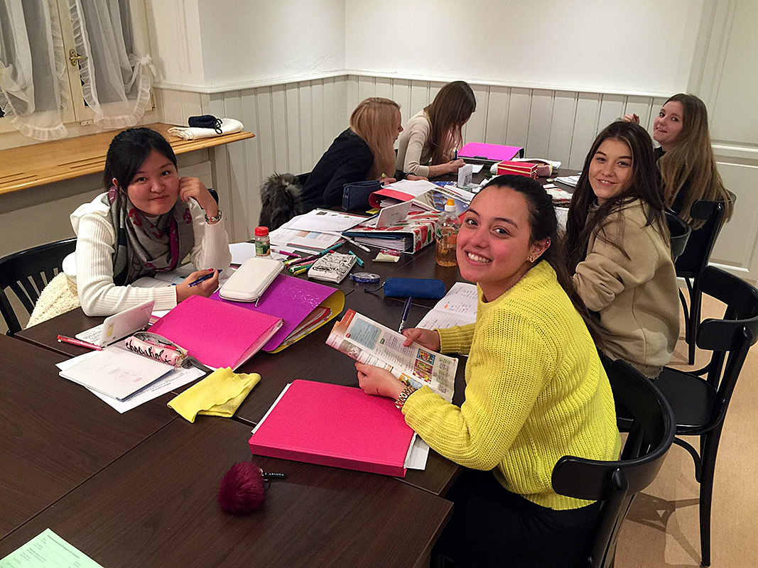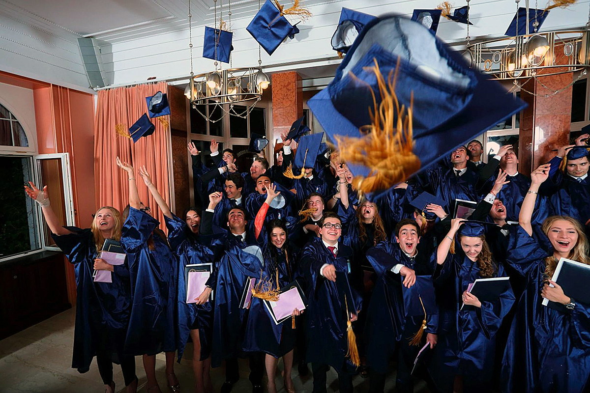 Проживают студенты в резиденции школы. Это 6 домов, на первых этажах которых находятся учебные классы, на верхних - резиденции. 3 дома - для девочек и 3 дома - для мальчиков, окруженных живописным парком, летом утопающим в розах и с потрясающим видом на Альпы.