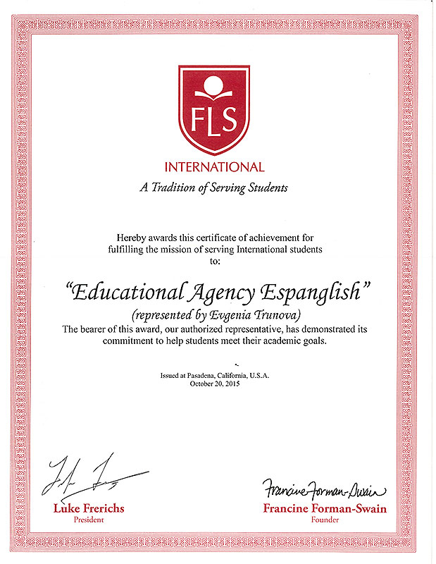 FLS International – международная языковая школа английского языка, основанная в 1986 г. FLS – качественное обучение английскому языку, помощь в подготовке к международным экзаменам и поступлении в высшие учебные заведение США. FLS получил аккредитацию от таких известных организаций, как: CEA, ACCET, NAFSA, TESOL и др.