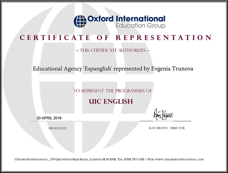 Языковая школа Oxford International аккредитована такими ассоциациями, как Британский Совет и ALTO, а также является членом EnglishUK, национальной Ассоциации аккредитованных центров английского языка в Великобритании.