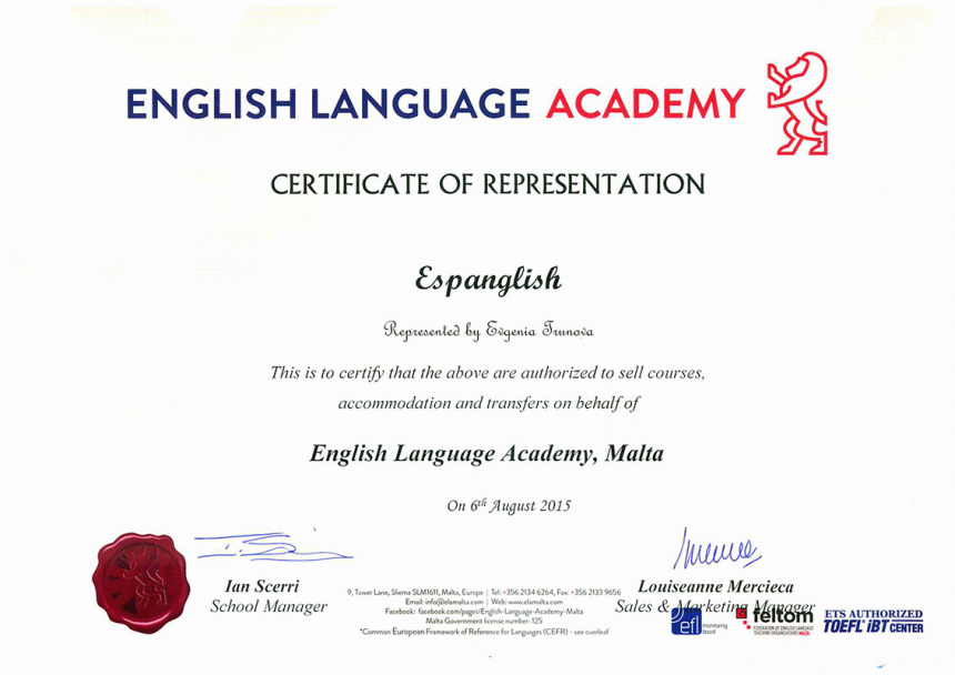 Языковая школа English Language Academy (ELA) - филиал LSI (Language Studies International) – один из основателей FELTOM (Федерации преподавания английского языка на Мальте). Учебное заведение открылось в 1988 году и получило признание Мальтийским Министерством Образования. Вот уже свыше 40 лет LSI предлагает своим студентам обучение высокого качества. Это подтверждает наличие лицензии на проведение программы под названием «EU Socrates Programme for Educational Courses».