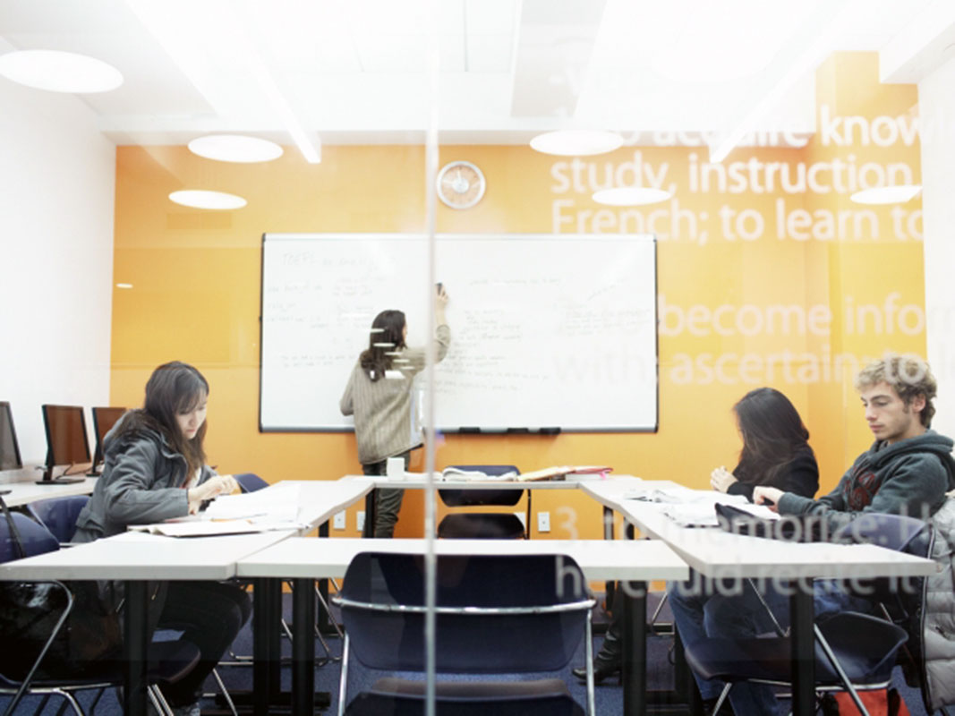 Всего в школе находится 16 просторных аудиторий, есть Wi-Fi, комната для самостоятельной подготовки к занятиям, 24 компьютера с подключением к Интернету и большой телевизор На первом этаже здания работает NYC Deli , который предлагает широкий ассортимент блюд.