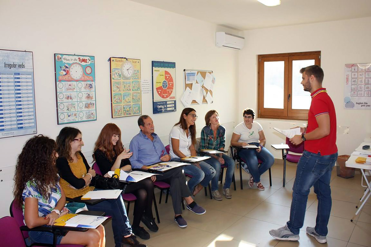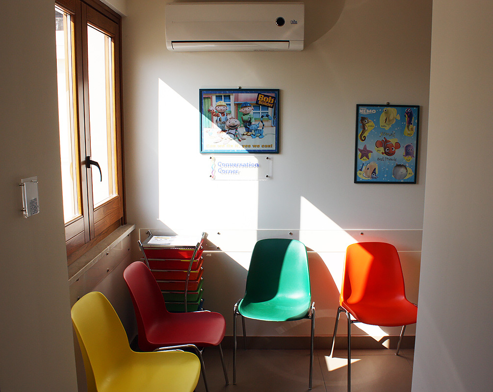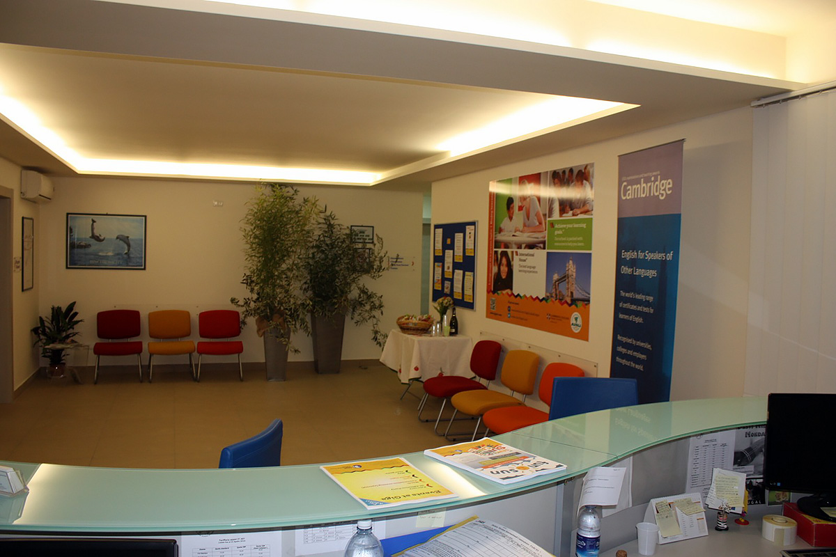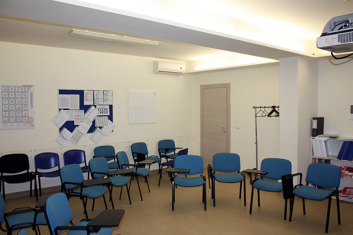 Школа занимает 420 кв.м в современном здании, неподалеку от оживленной исторической улицы Виа Этнеа и изящной Пьяцца Дуомо. В распоряжении студентов имеется: светлые и просторные аудитории, оборудованные интерактивными досками, аудио-видео материалами и всем необходимым оборудованием, большая открытая терраса на 800 кв.м с великолепным видом на вулкан Этна, бесплатный вай-фай на всей территории школы.