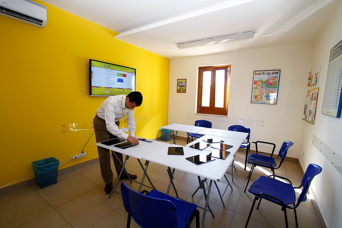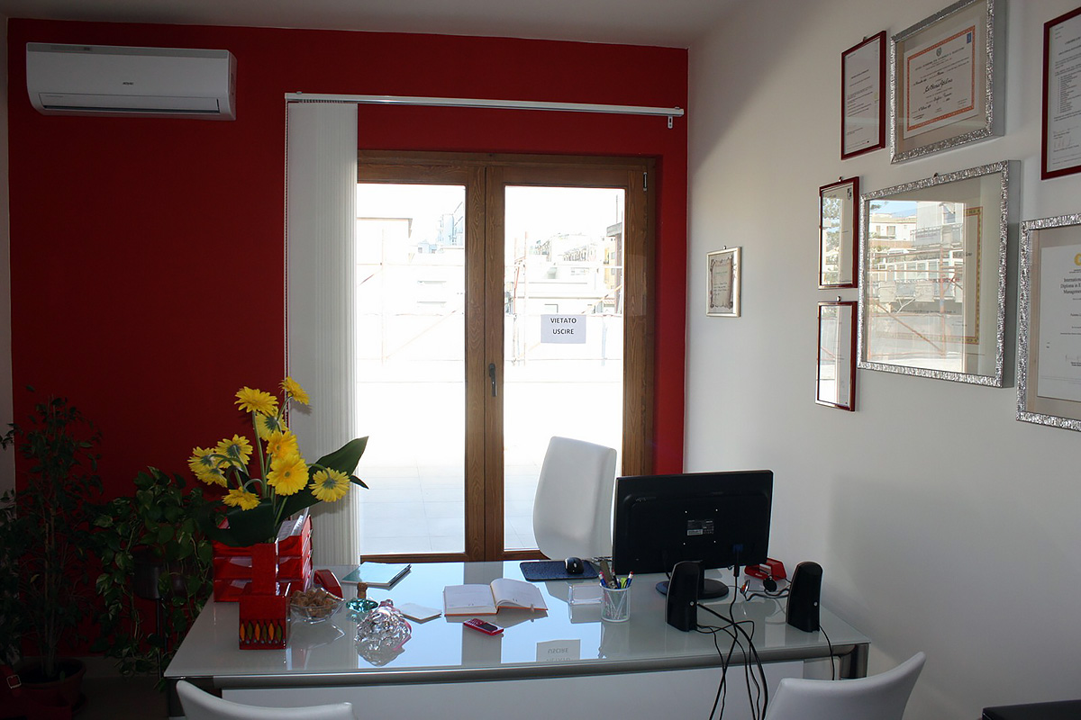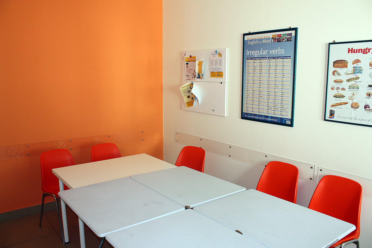 Школа занимает 420 кв.м в современном здании, неподалеку от оживленной исторической улицы Виа Этнеа и изящной Пьяцца Дуомо. В распоряжении студентов имеется: светлые и просторные аудитории, оборудованные интерактивными досками, аудио-видео материалами и всем необходимым оборудованием, большая открытая терраса на 800 кв.м с великолепным видом на вулкан Этна, бесплатный вай-фай на всей территории школы.