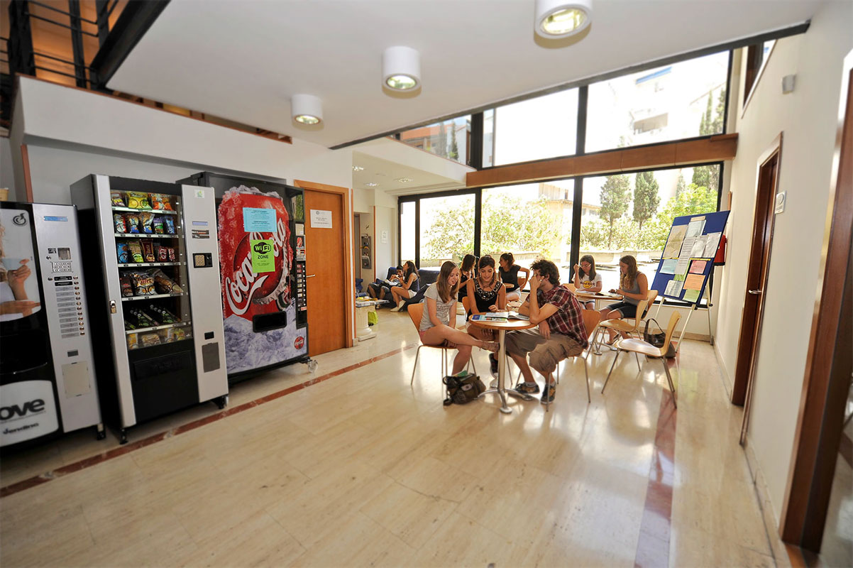 Языковая школа расположена на первых трёх этажах исторического здания. Общая площадь помещения – 1800 м2. 1300 м2 занимают аудитории (их в школе 38), а остальные 500 м2 используются как общие зоны. Например, в школе предусмотрен уютный зал для отдыха, где можно расслабиться в перерывах между занятиями, выпить кофе и пообщаться с другими студентами, а также есть два конференц-зала на 100 и 70 человек. Поесть можно в кафе, которое находится прямо на территории учебного заведения, а также в свободное время можно воспользоваться интернетом в компьютерном зале (на 20 мест). Для желающих заходить в интернет со своего ноутбука или планшета есть Wi-Fi соединение. Школа оборудована кондиционерами и центральным отоплением, поэтому здесь комфортно в любую погоду.