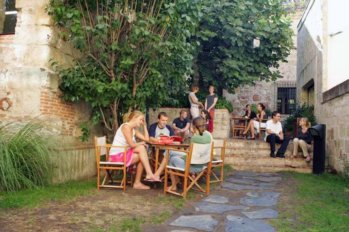 По дороге на занятия студенты могут насладиться красивым двориком и садом, которые разделяют территорию школы на три части: офисы, кафе и классы.