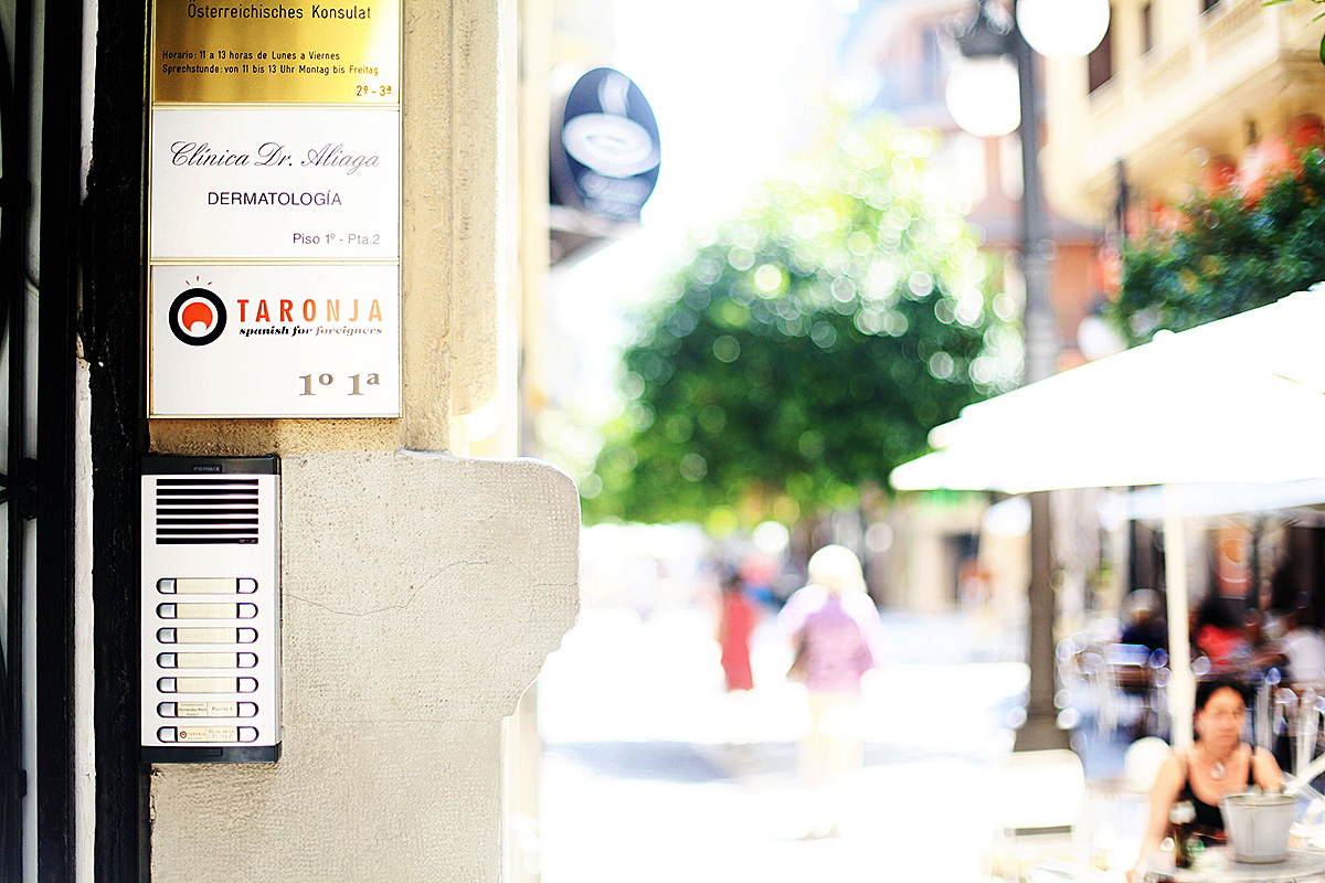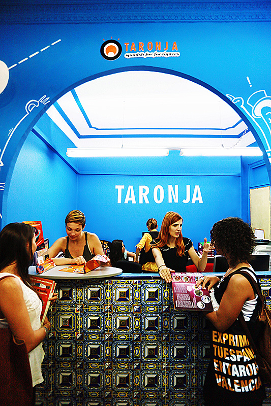Taronja - очень уютная школа, над дизайном которой работали молодые валенсийские дизайнеры. Их работа - настоящее произведение искусства. В Taronja 7 аудиторий с интерактивными досками, терраса, библиотека с аудио и видео материалами, Wi-Fi, кондиционеры и отопление, зона отдыха и аппараты с кофе и снеками. Работники ресепшена в любой момент готовы прийти на помощь. Школа оборудована для людей с ограниченными возможностями.