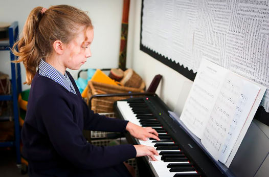В музыкальной школе есть концертный зал, студия звукозаписи и музыкальные технологии.