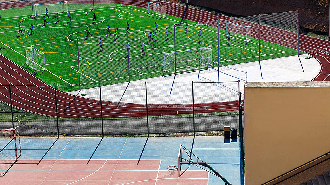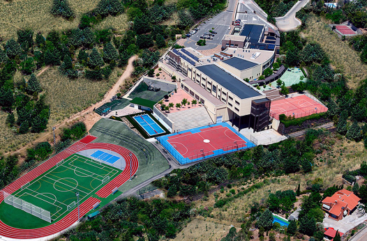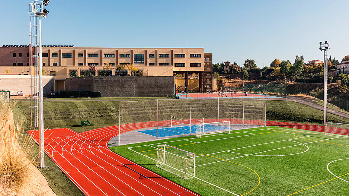 Школа расположена в эксклюзивном жилом районе Толедо в Испании и занимает площадь в 30 000 квадратных метров.