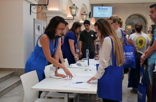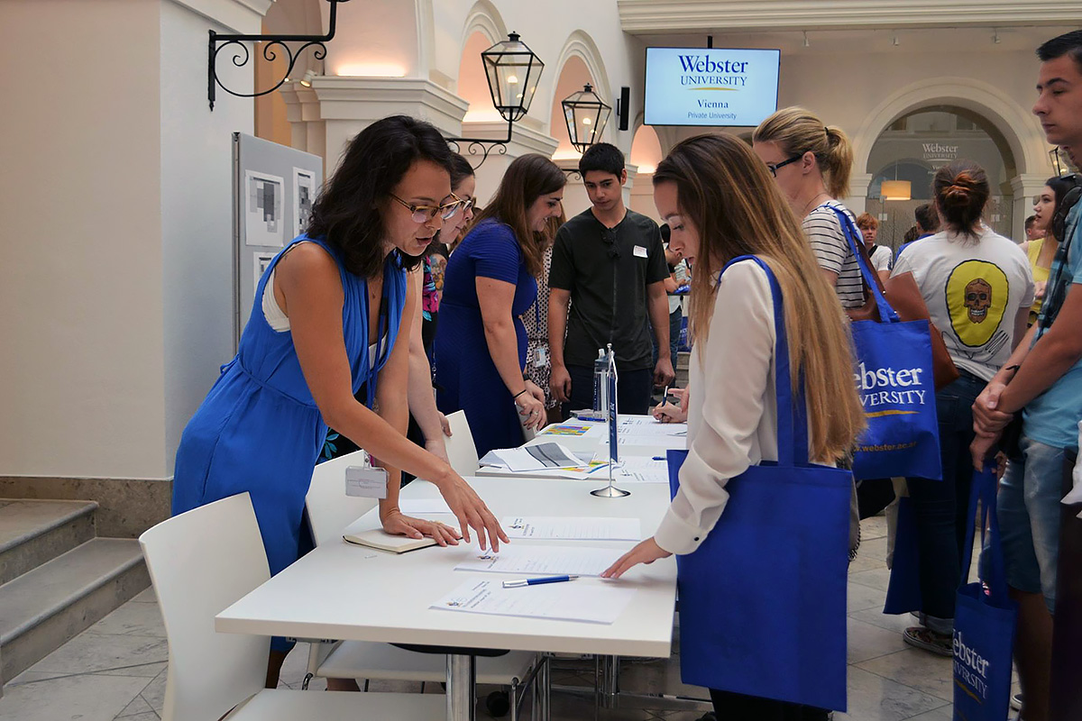 В венском Вебстерском университете в Вене учатся около 500 студентов (350 на программах бакалавриата, а 150 - на программах магистратуры) из 70 стран и работают более ста преподавателей из 20 стран. Около 20% студентов - австрийцы и 10% - студенты из США. Остальные - из других стран мира.