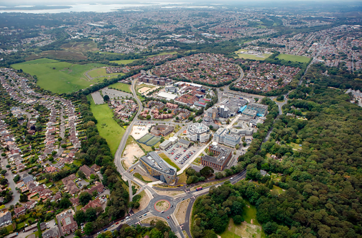 Сам кампус расположен на южном побережье Англии. Студенты могут наслаждаться живописными морскими пейзажами. В городе находится национальный парк New Forest и объект мирового культурного наследия Побережье Юрского периода. Кроме того, из Борнмута можно добраться до Лондона за 2 часа.