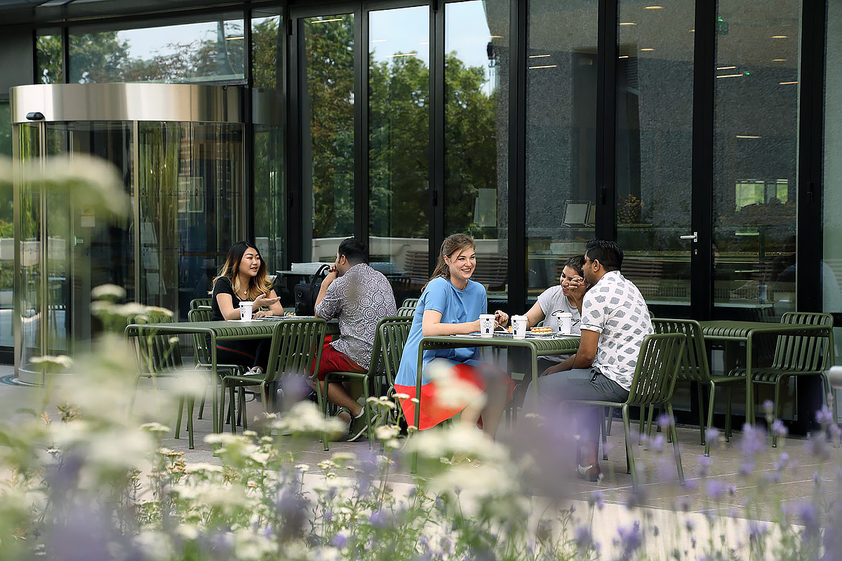 Парижский кампус находится на набережной реки Сены в окружении ресторанов, кинотеатров и супермаркетов.