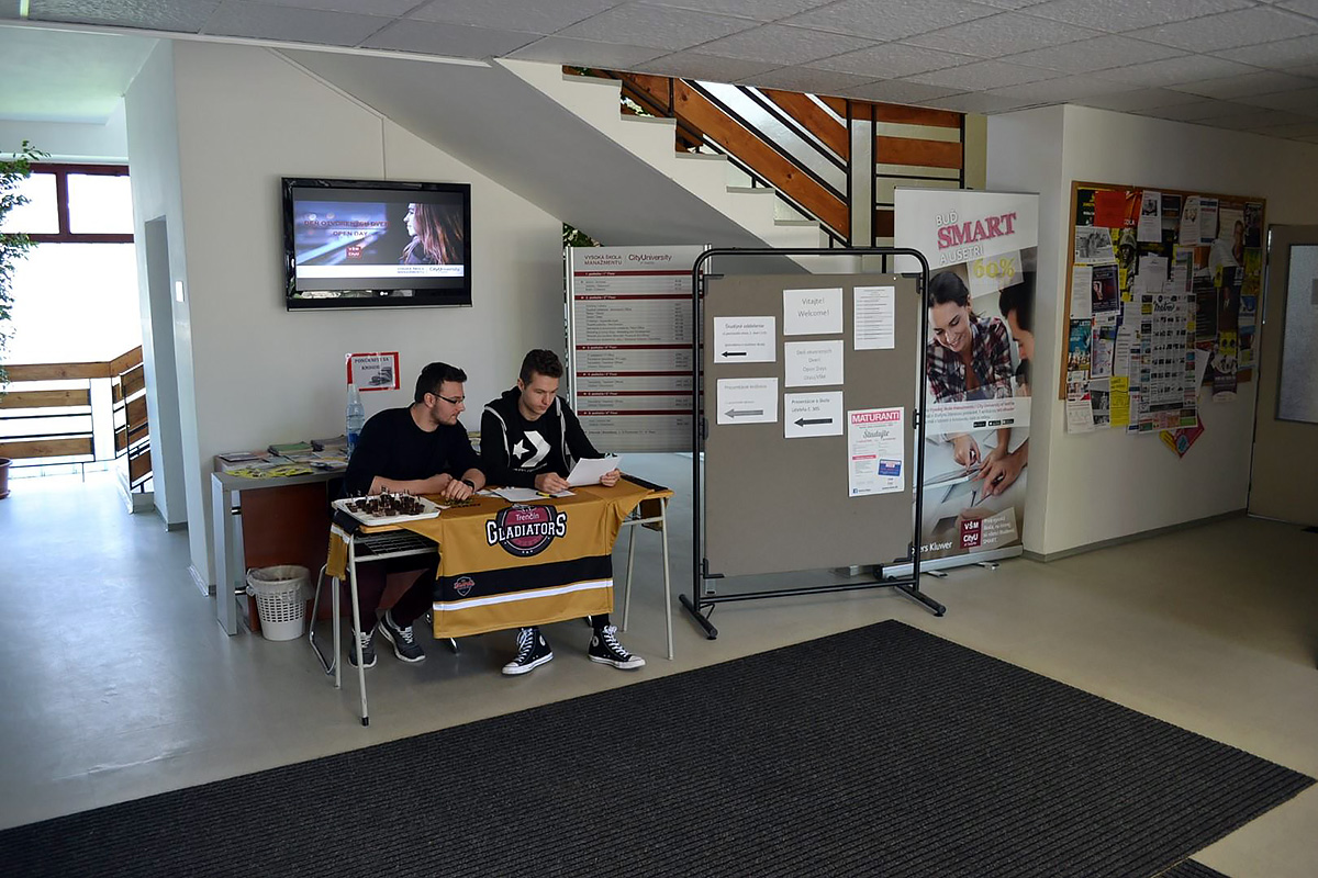 Кампусы школы расположены в Братиславе и Тренчине. Главное здание университета находится в Братиславе на территории кампуса городского типа. Отделение школы в Тренчине - небольшое учебное заведение, на территории которого одновременно обучается около 2000 студентов. Кампусы имеют в распоряжении собственную библиотеку и спортивные сооружения.