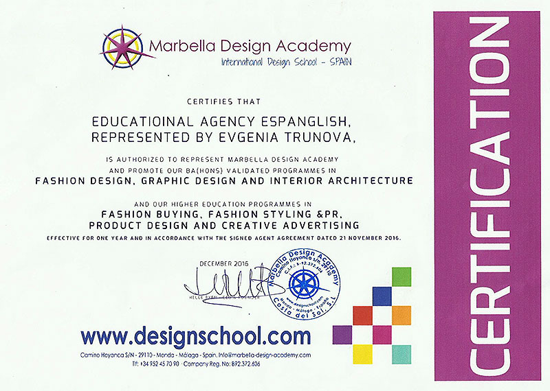 - Единственная школа дизайна в Андалусии;