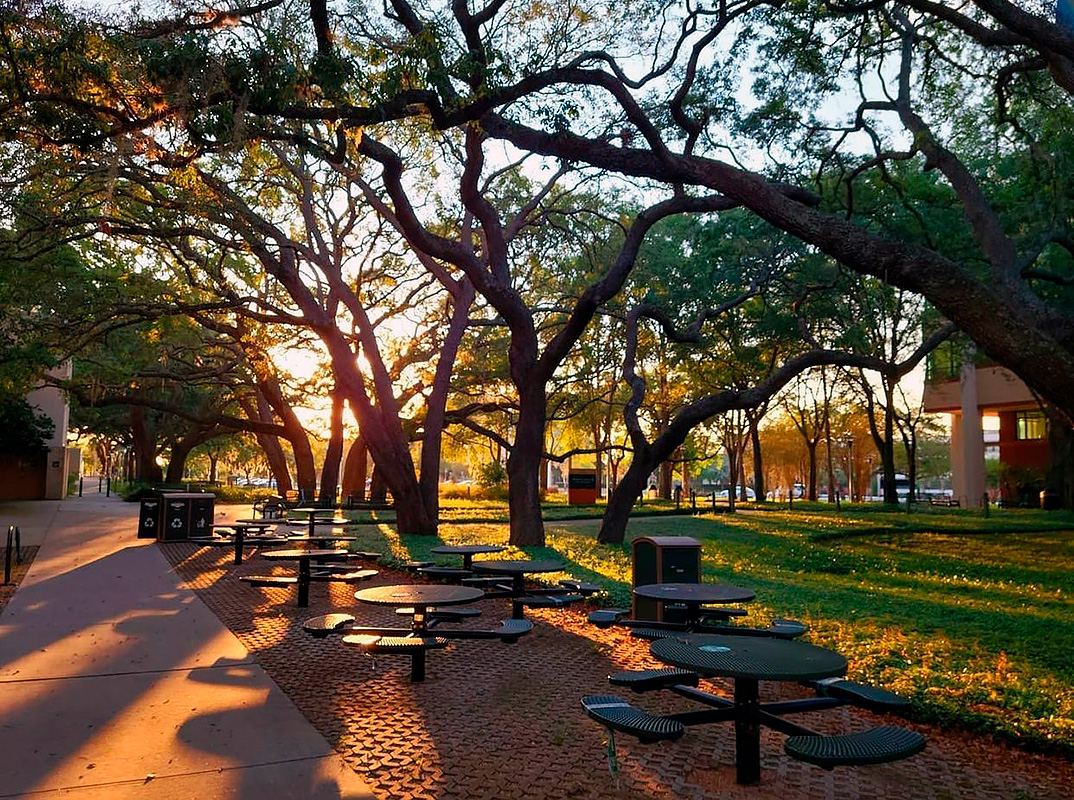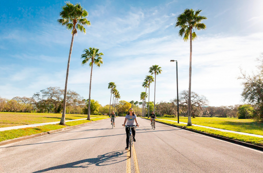Город Тампа известен, прежде всего, солнечной погодой и пляжами. Студенты университета и жители города могут наслаждаться ясной погодой 237 дней в году. Протяженность пляжной линии составляет порядка 1300 км. В полутора часах езды от кампуса находится несколько парков развлечений - Busch Gardens, Adventure Island, The Florida Aquarium.