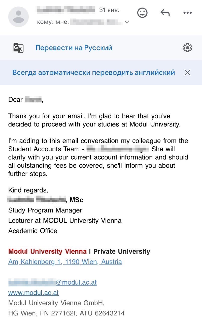 Полученные офферы: Foundation в Modul University Vienna + бакалавриат в WU (Vienna University of Economics and Business)