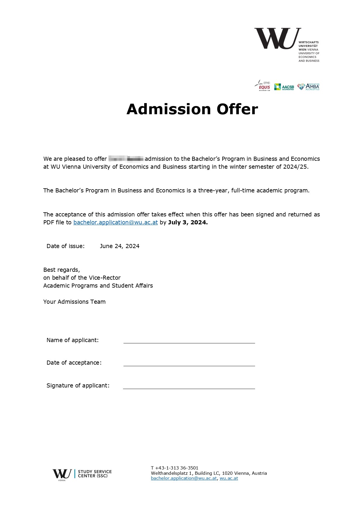 Параллельно с учёбой на Foundation мы начали готовить заявку на бакалавриат в Венский университет экономики и бизнеса (WU):